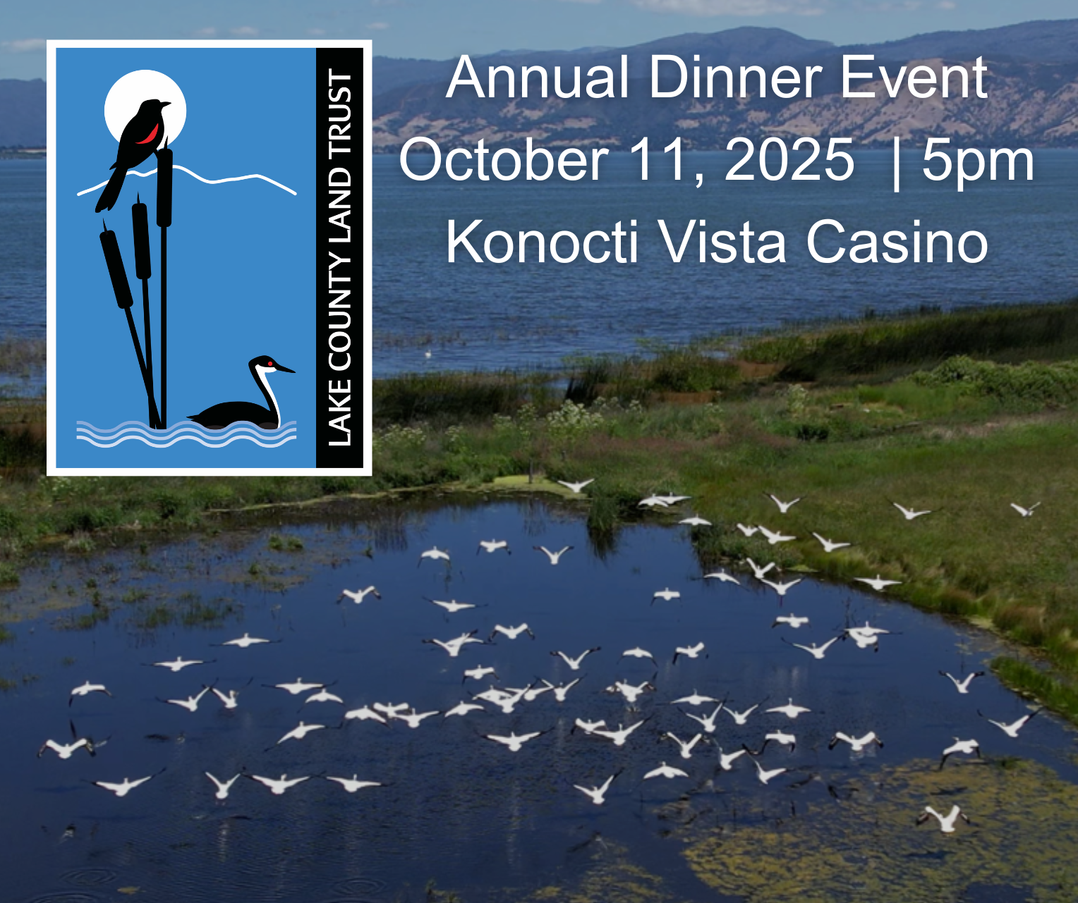 Moving Forward Together Annual Dinner Lake County Land Trust Fundraiser to support the Land Trust to protect, conserve, and restore wild lands and waters in Lake County for current and future generations! Guest Speaker: Randall Krag, Executive Director, Lake County Resource Conservation District. Live Music by: Paul Kemp. Supporter of the year honored, Silent Auction, and Fund-A-Need Paddle Raise.