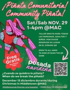 Join us in decorating three giant community piñatas to break during Christmas in Middletown — as part of the Posadas tradition!